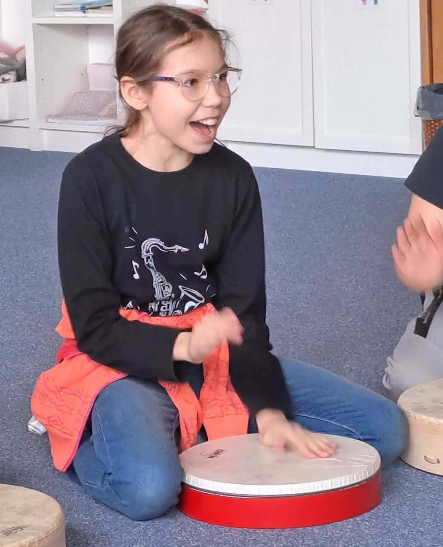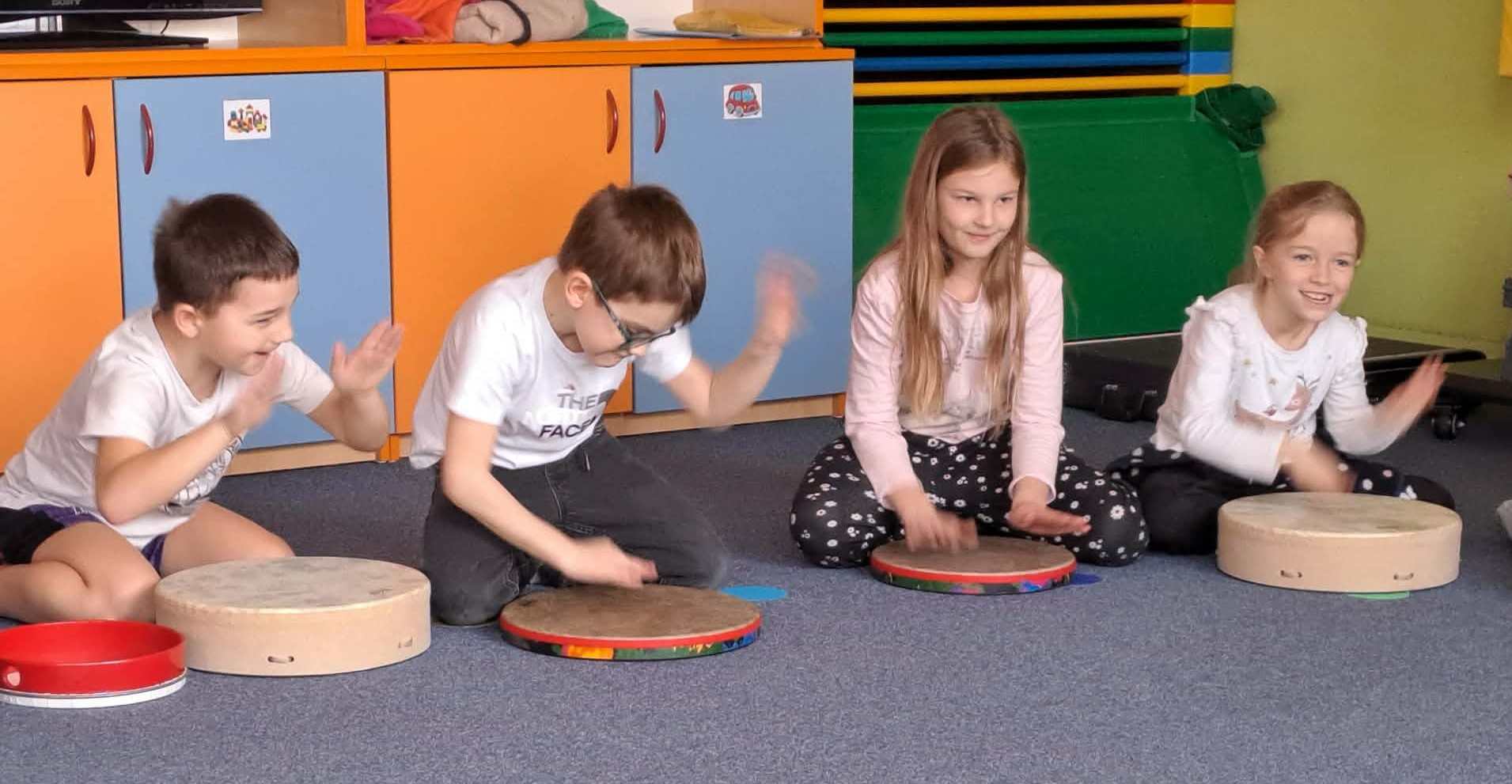 V pondělí 9. 3. k nám přijel bubeník. Každý jsme dostali svůj buben. To byl tedy rachot. Ale pozor, museli jsme i poslouchat a spolupracovat. Třeba na ukázání ztišit. A to se nám moc nechtělo. Zato hrát nahlas bylo skvělé. A zkusili jsme si vyťukávat i jména některých z nás. No a nejlepší bylo, když měl někdo dlouhé jméno, to jsme si to nemohli ani zapamatovat, jak se to bubnuje.