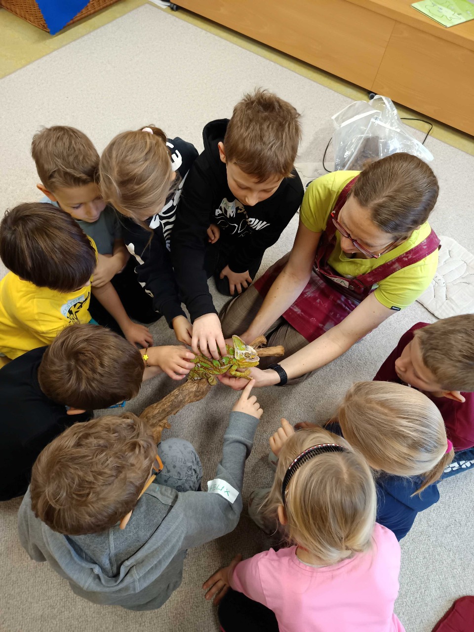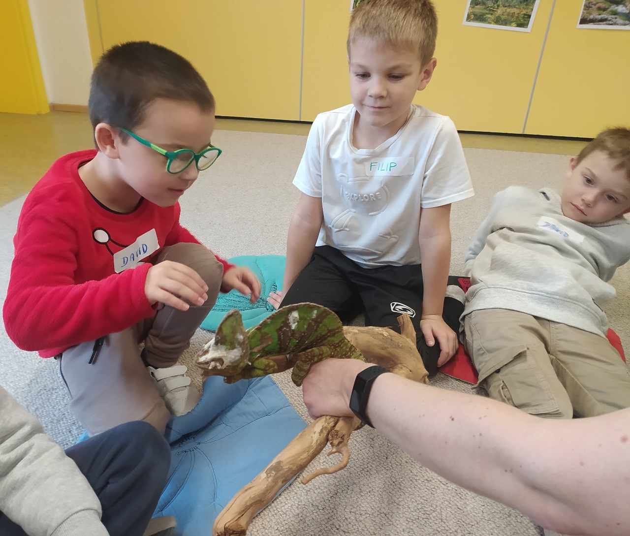 Ve středu 12. 11. jsme navštívili jedno z pracovišť Lipky, organizace zaměřené na environmentální výchovu. Tématem programu byli plazi, jedna z nejohroženějších skupin živočichů. Během programu se děti naučily, kdo jsou to plazi, na jaké skupiny se dělí, co potřebují k životu a čím přispívají želvy k udržování života korálových útesů. Několik různých plazů jsme si mohli pohladit a z blízka pozorovat jaké jsou jejich zvláštnosti. Pomocí pohybových her jsme mohli zažít, jak člověk zasahuje do života plazů a proč je potřeba jejich životní prostředí chránit. Na závěr si děti vyrobily plstěnou želvičku, a tak si kromě vědomostí a zážitků odnesly i drobnou památku.